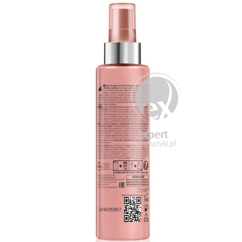 Serum antyoksydacyjne do włosów koloryzowanych, chroniące przed wysoką temperaturą i przeciwdziałające puszeniu się włosów.