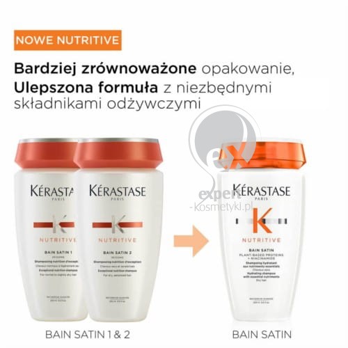 Nutritive Bain Satin ma konstystencję białego kremowego żelu i nie obciąża włosów, dzięki czemu jest najlepszym szamponem do włosów suchych. Butelka szamponu wykonana w 95% z tworzywa z recyklingu.