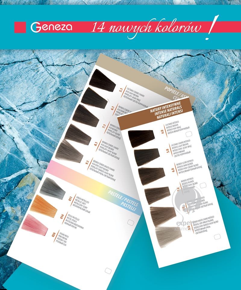 Farby Lecher Geneza Future Colot to paleta ponad 90 odcieni nadających żywy, nasycony kolor i zapewniających całkowite pokrycie siwych włosów. Wyselekcjonowane składniki zapewniają ochronę włosa podczas koloryzacji.