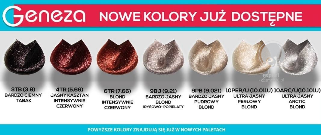 Farby Lecher Geneza Future Colot to paleta ponad 90 odcieni nadających żywy, nasycony kolor i zapewniających całkowite pokrycie siwych włosów. Wyselekcjonowane składniki zapewniają ochronę włosa podczas koloryzacji.