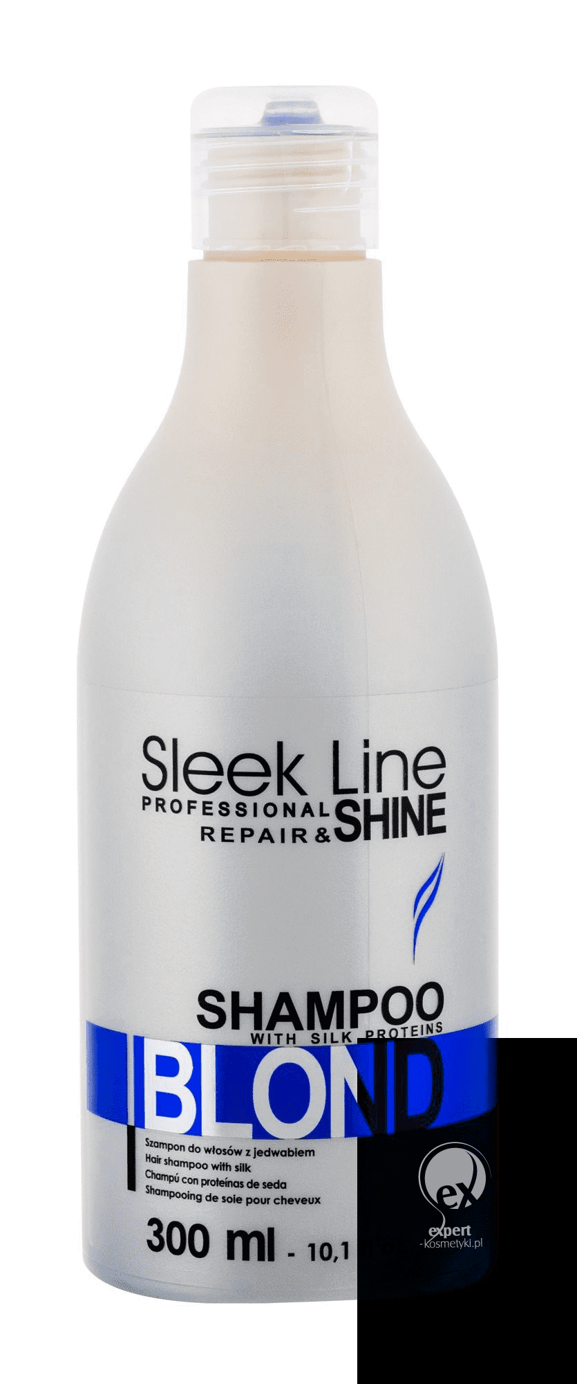 Szampon Z Jedwabiem Włosy Blond Specjalna formuła szamponu zapewnia włosom platynowy odcień. Dzięki proteinom jedwabiu doskonale regeneruje zniszczoną strukturę włosa. Delikatnie myje, eliminuje żółty odcień włosa. Nadaje się do częstego stosowania.
